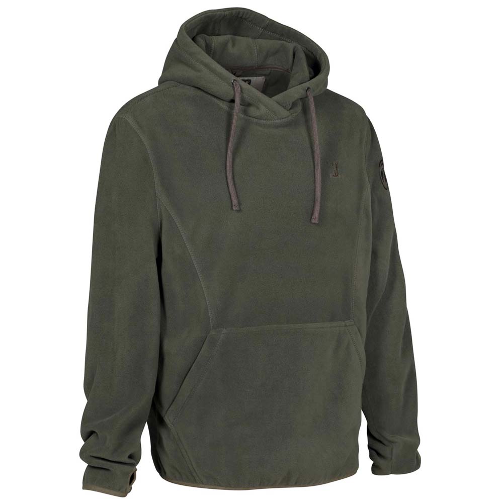 Der Percussion Fleece Kapuzen-Sweatshirt in Khaki hat eine Känguru-Brusttasche und eine Kapuze mit Tunnelzug. Das Sweatshirt hat eine gute Passform, ist bequem und schützt vor Kälte und Wind.